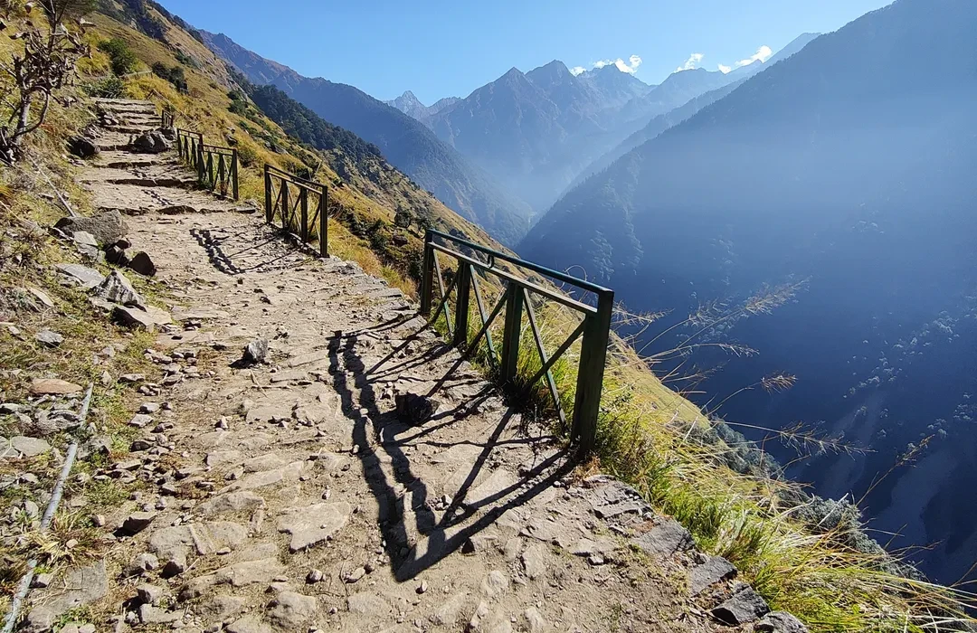 The Madhmaheshwar trek route includes beautiful forests, waterfalls, wooden bridges, and scenic meadows. It is considered moderate and suitable for fit beginners.